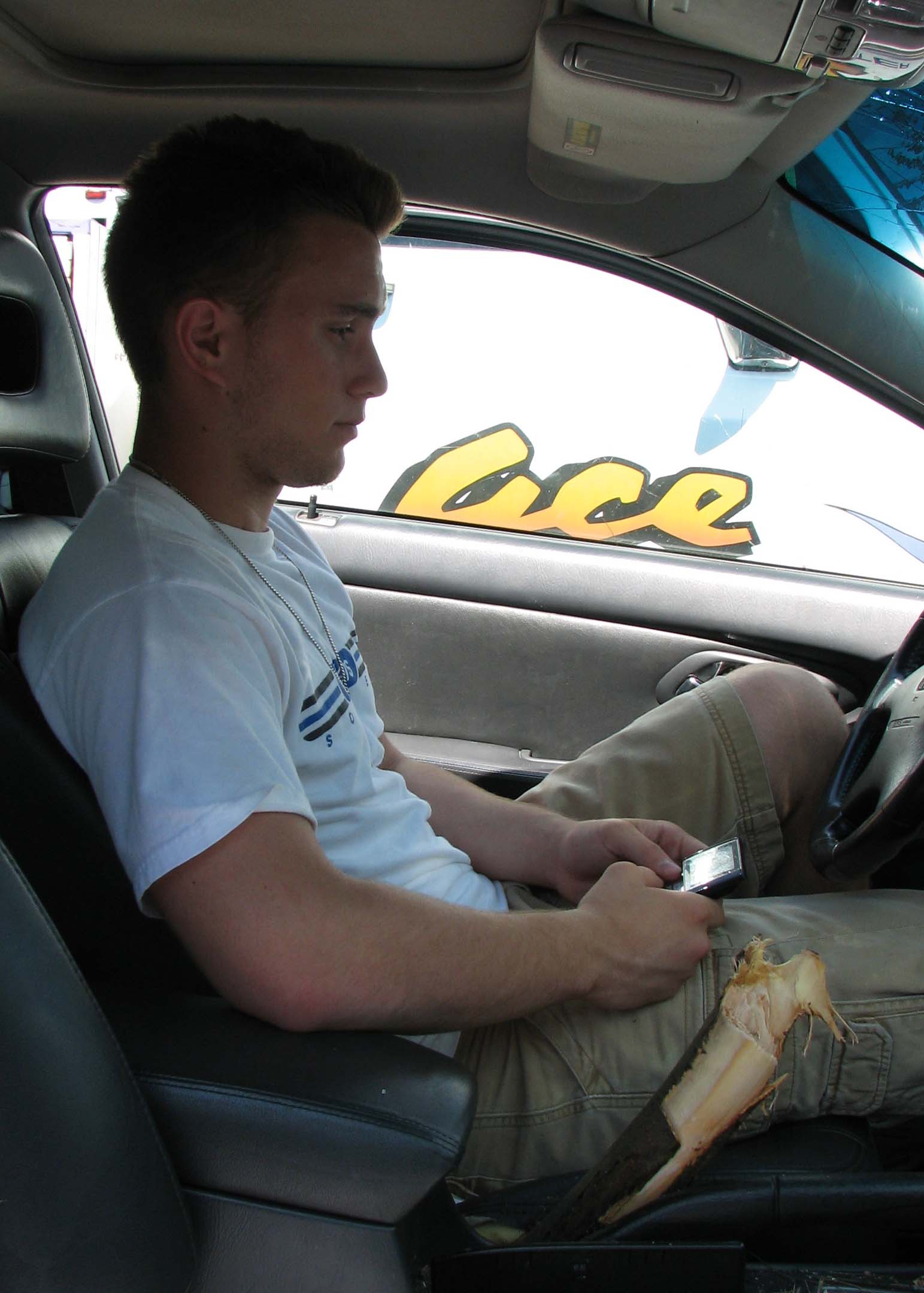 the branch. It broke through the windshield and passed through the seat