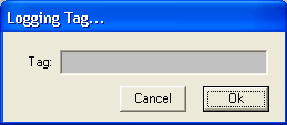 Both standard and longterm logging allow the user to manually add entries into the log file. Prior to Aug 2006, this was done through interaction within the standard logging dialog box. Since this feature applies to both standard and longterm logging, this dialog box is now a separate dialog that is activated by the Logging->InsertTag pull down menu item...