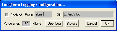 Longterm logging uses the following dialog box retrieved from the menu item: Logging->LongTerm...